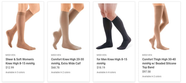 Mediven's range includes various styles and compression levels, catering to different needs and preferences.